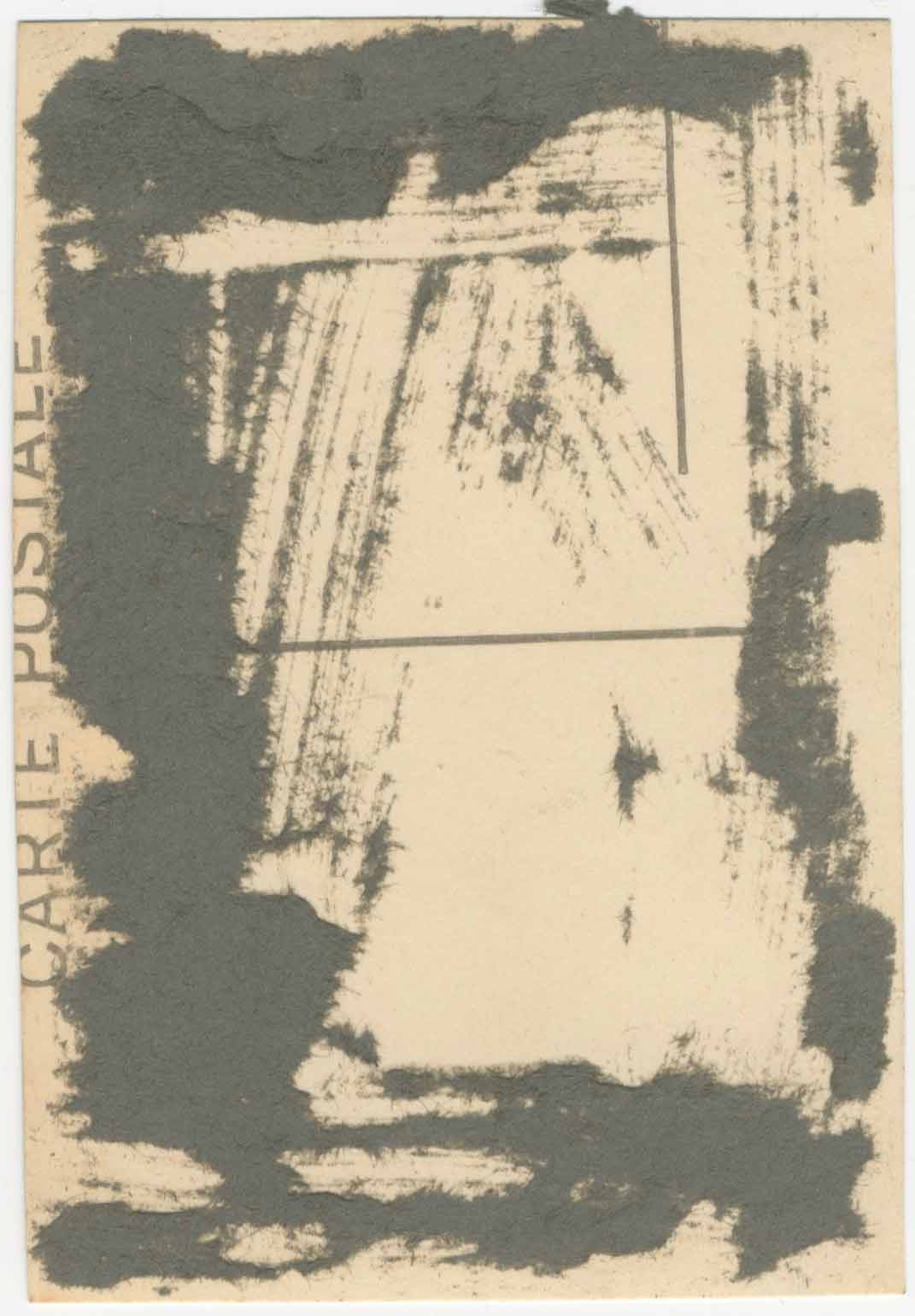 Back : divided postcard format, remains of collage.