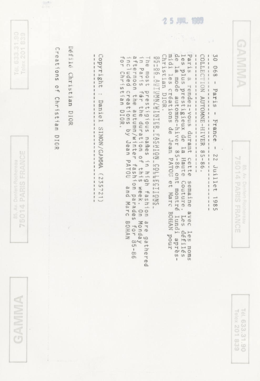 Fashion Show Christian DIOR 1985 – Prêt à Porter