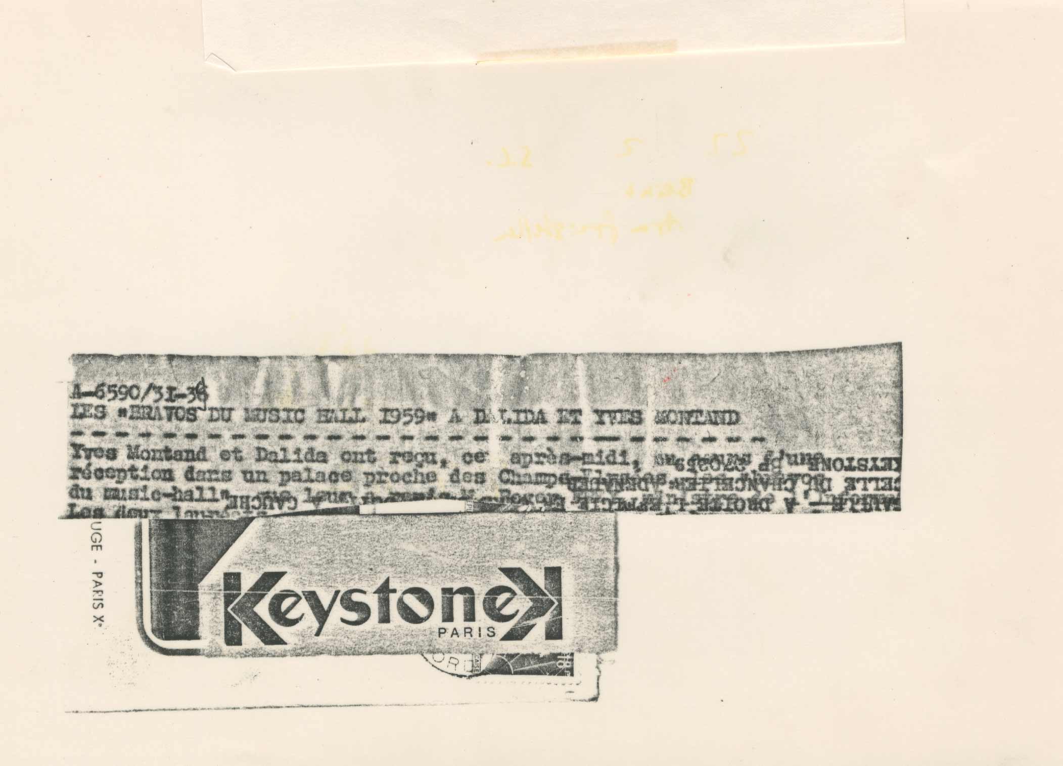 DALIDA-Yves MONTAND Bravos de la musique 1959