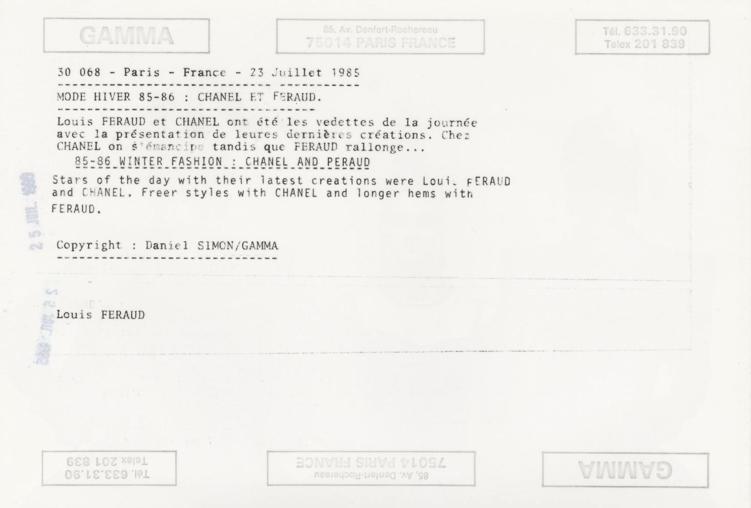 Défilé Louis FERAUD 1985 – Prêt à Porter