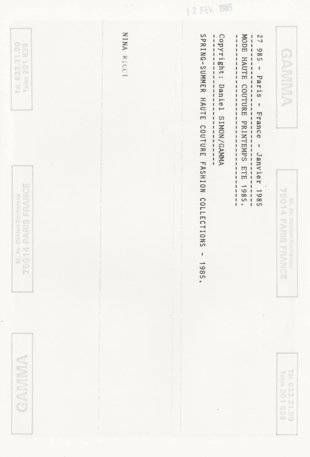 Défilé Nina RICCI 1985 – Prêt à Porter