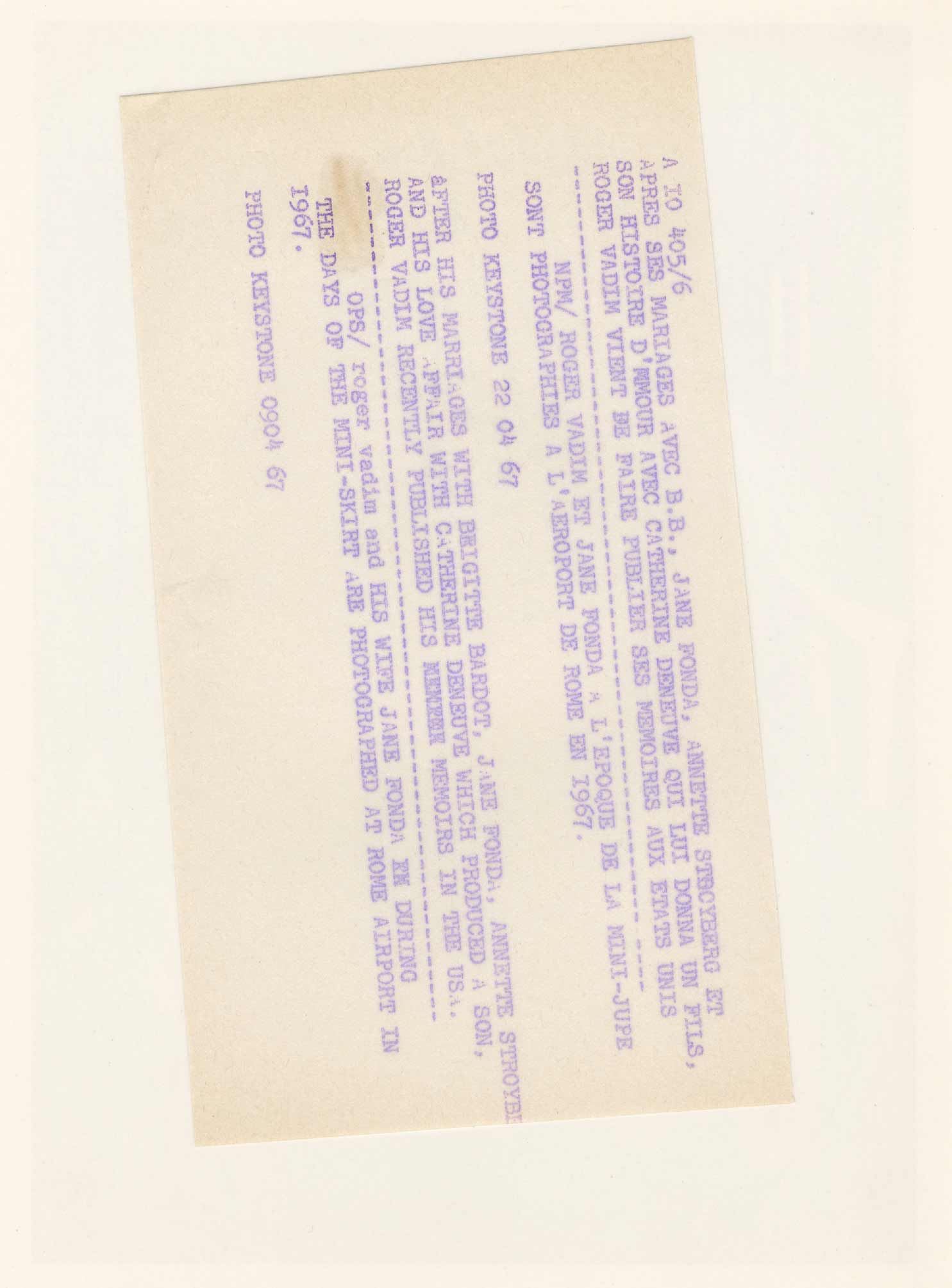 Jane FONDA et VADIM à L’aéroport de Rome en 1967