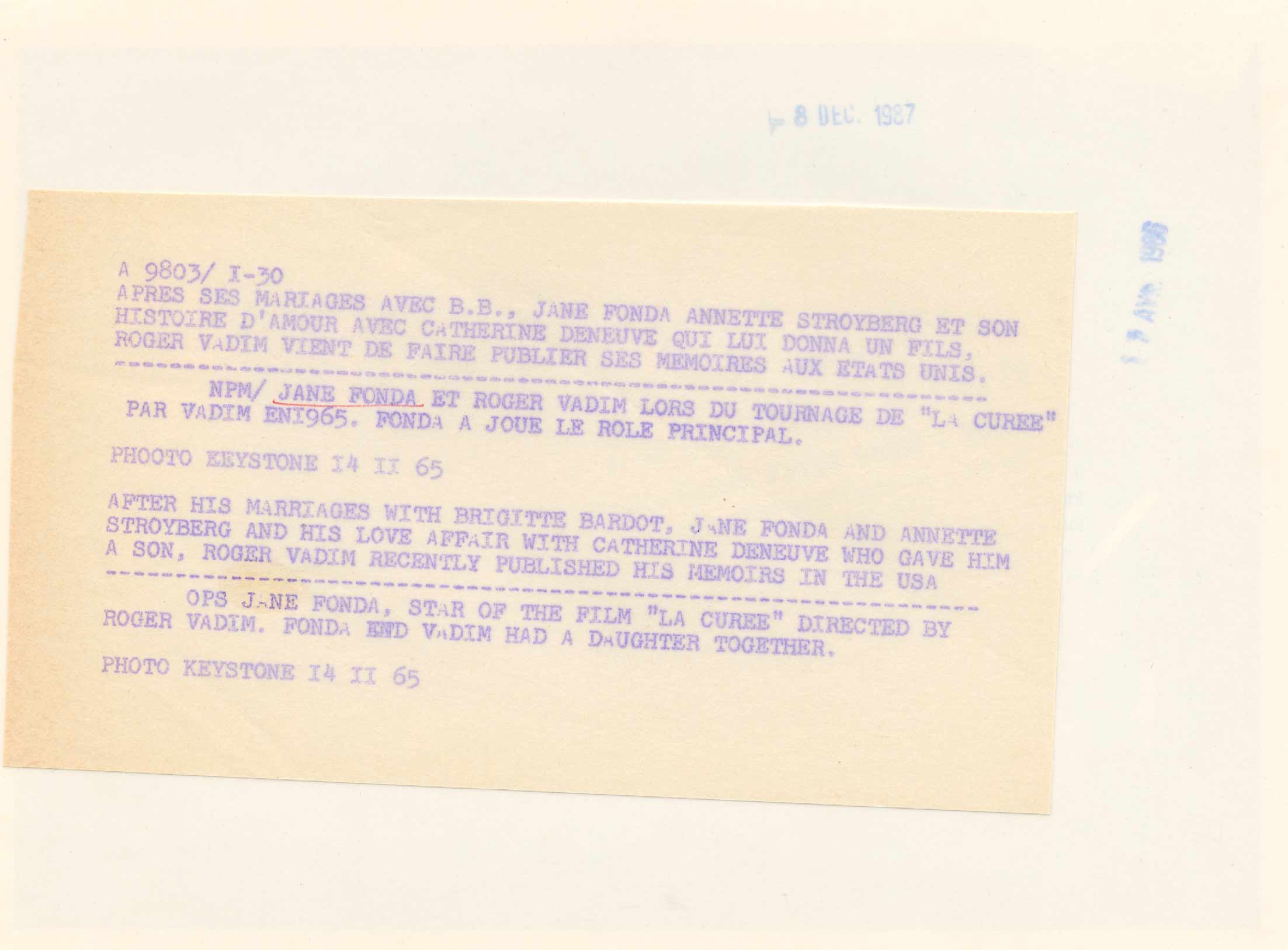 Jane FONDA VADIM Tournage « La Curée » 1965 Tirage Argentique Original 22x16cm
