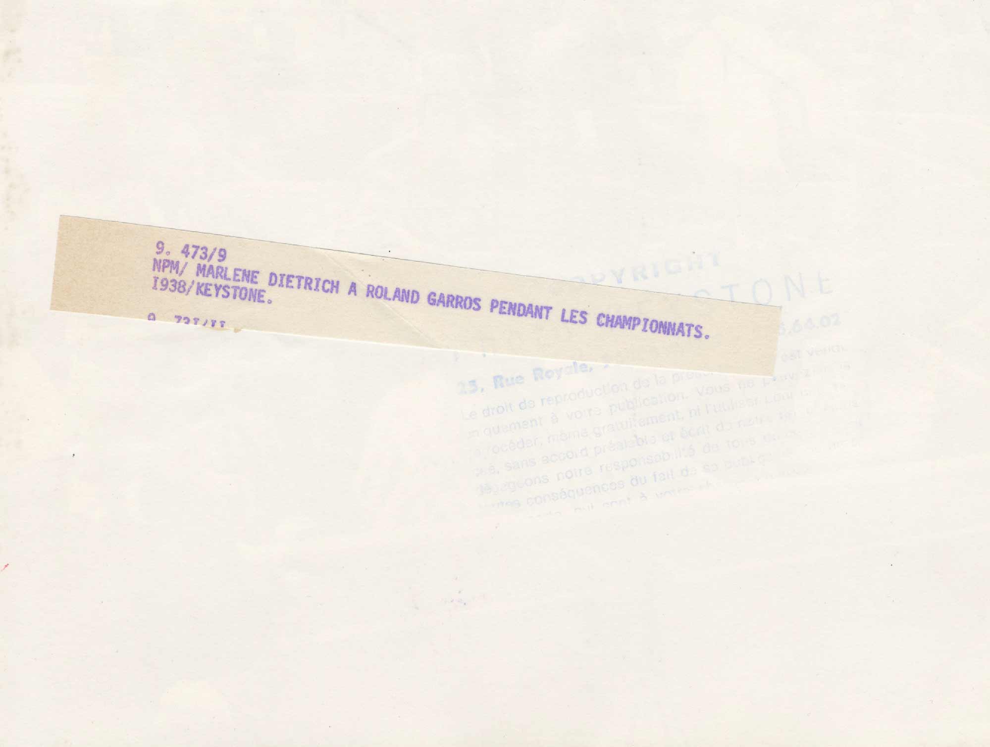 Marlène DIETRICH à Rolland Garros – vers 1938