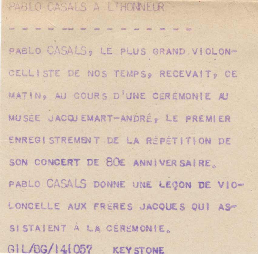 Pablo CASALS, les Frères Jacques – Tirage Argentique Original 1957 14x13cm