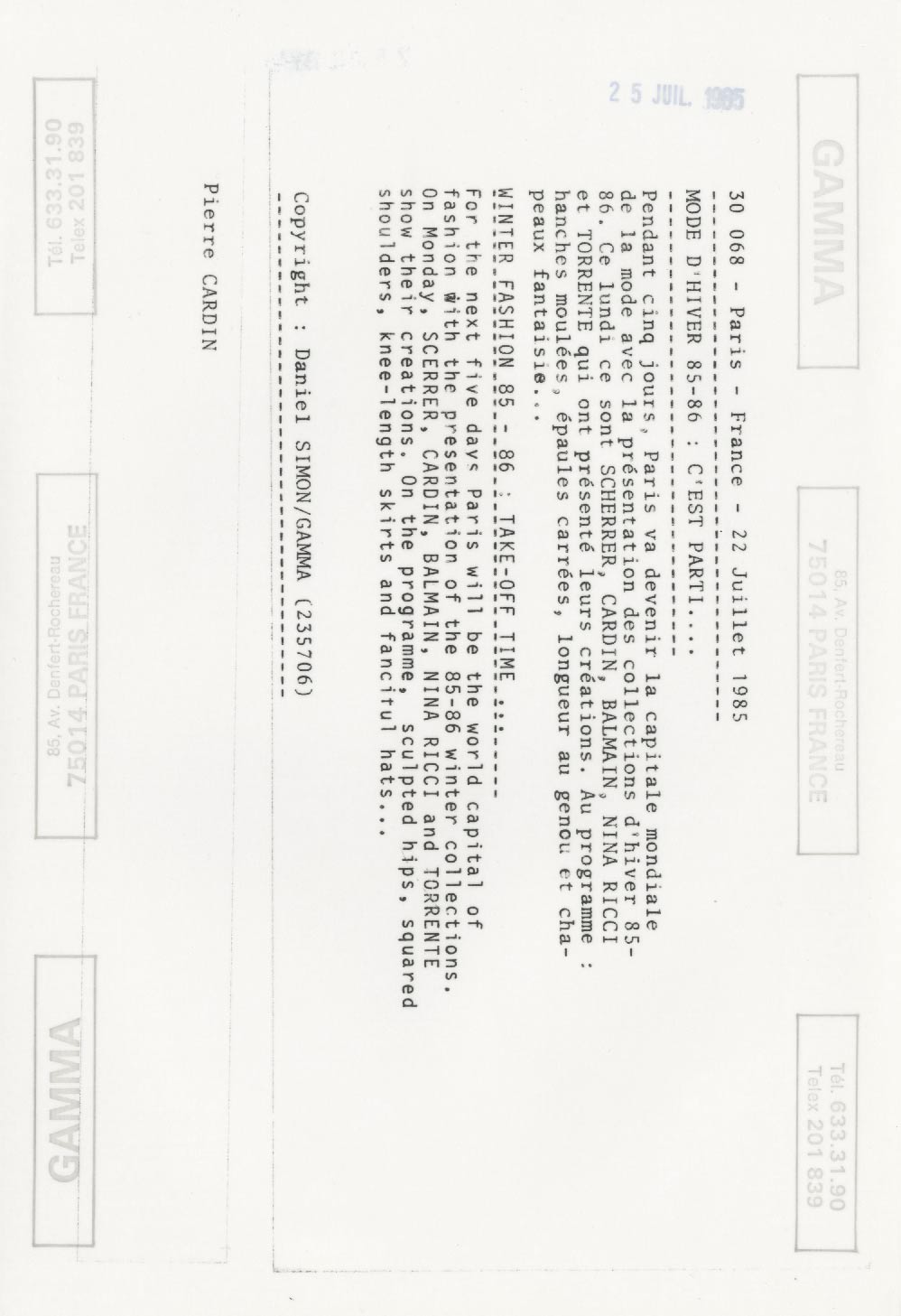 Pierre CARDIN Défilé 1985 – Prêt à Porter – Tirage Original 26x18cm
