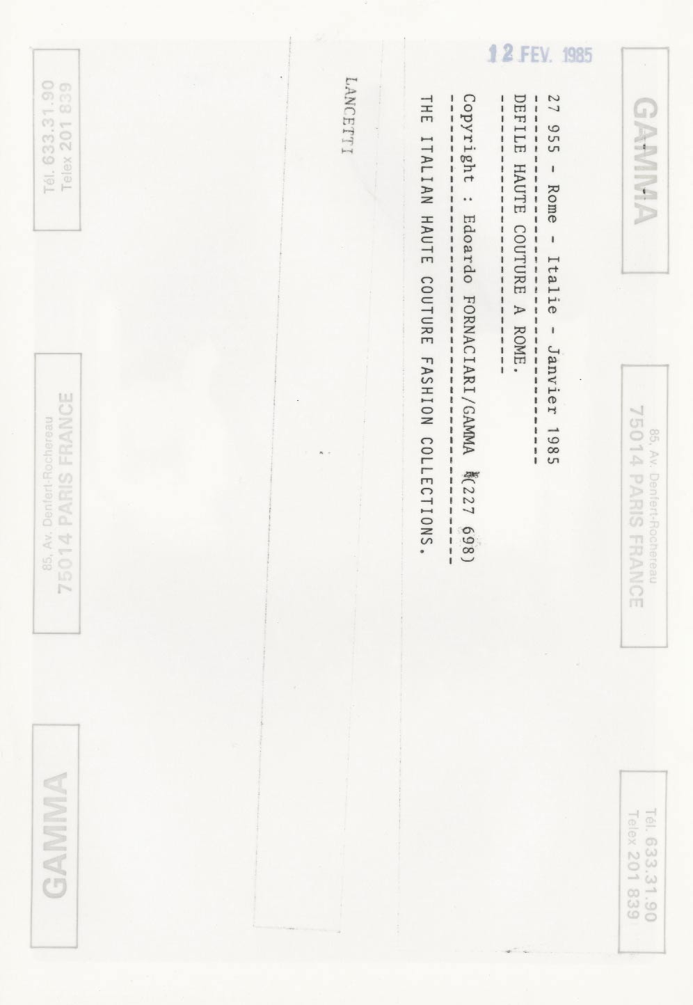 Pino LANCETTI Défilé 1985 – Prêt à Porter