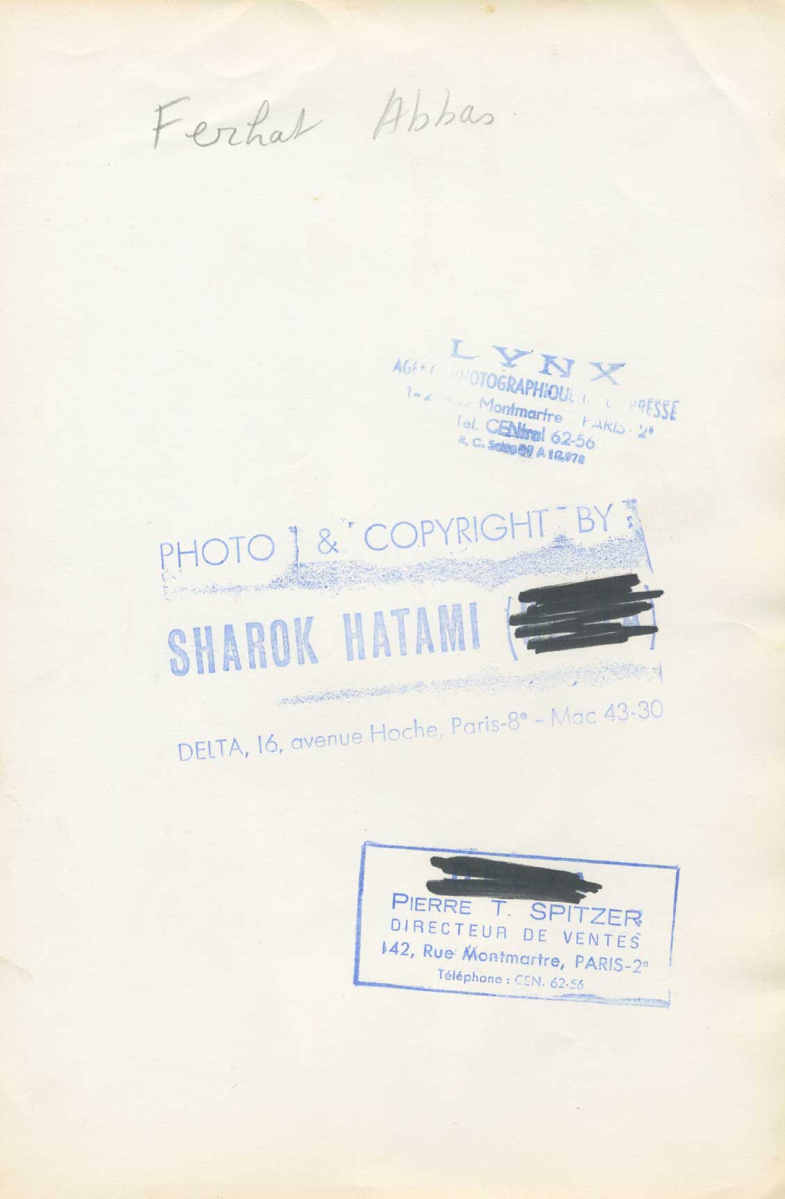 Dos : Copyright « Photo et Copyright SHAROK HATAMI ».